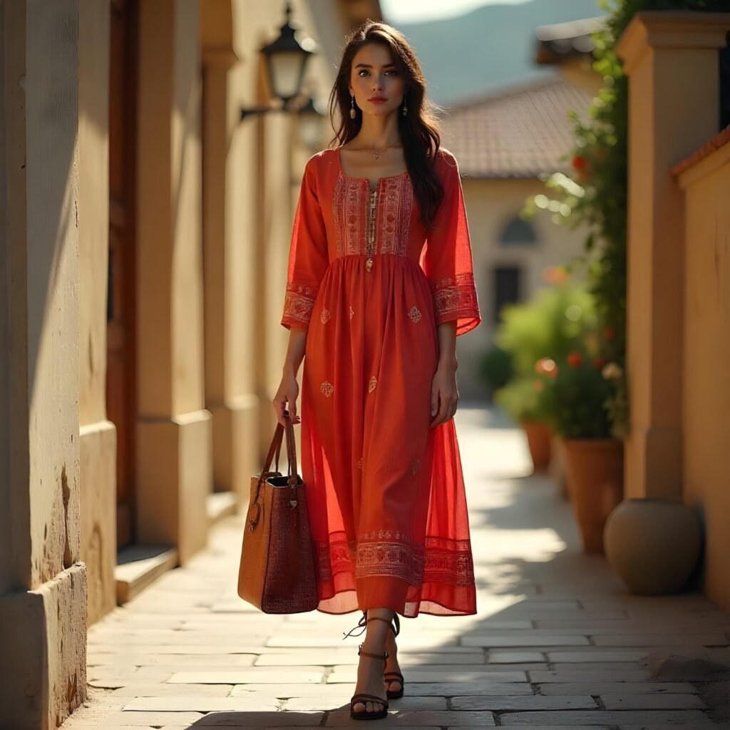 Kurtis are among the most versatile ethnic outfits that can be styled in multiple ways. At Anvera, we design kurtis that allow women to experiment with styling while maintaining elegance. For daily wear, cotton kurtis paired with leggings or straight pants offer a simple yet graceful look. They are comfortable, breathable, and ideal for long working hours. Adding minimal accessories can further enhance the appearance without making it overwhelming. For festive occasions, embroidered or printed kurtis paired with palazzos, shararas, or skirts create a rich ethnic look. Statement earrings, bangles, and traditional footwear like juttis can elevate the outfit beautifully. Indo-western styling is another growing trend. Pairing kurtis with denim, trousers, or belts creates a fusion look suitable for casual outings and social gatherings. Layering with jackets or dupattas also adds uniqueness to the outfit. Anvera offers designs that adapt easily to different styling choices, helping women create multiple looks from a single outfit.
