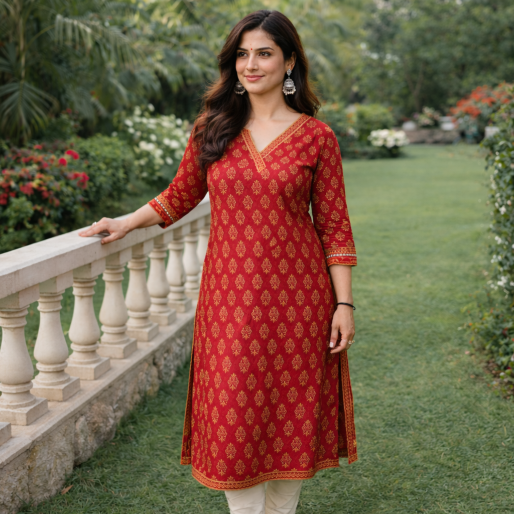 Kurtis are among the most versatile ethnic outfits that can be styled in multiple ways. At Anvera, we design kurtis that allow women to experiment with styling while maintaining elegance. For daily wear, cotton kurtis paired with leggings or straight pants offer a simple yet graceful look. They are comfortable, breathable, and ideal for long working hours. Adding minimal accessories can further enhance the appearance without making it overwhelming. For festive occasions, embroidered or printed kurtis paired with palazzos, shararas, or skirts create a rich ethnic look. Statement earrings, bangles, and traditional footwear like juttis can elevate the outfit beautifully. Indo-western styling is another growing trend. Pairing kurtis with denim, trousers, or belts creates a fusion look suitable for casual outings and social gatherings. Layering with jackets or dupattas also adds uniqueness to the outfit. Anvera offers designs that adapt easily to different styling choices, helping women create multiple looks from a single outfit.